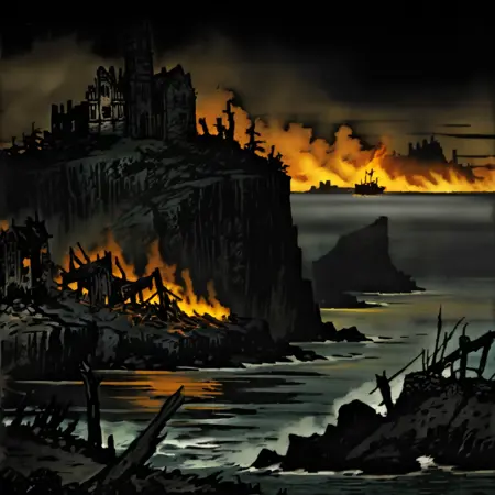 DDAreaCove - 코브 - 이미지 양쪽에 산호 기둥, 선박 잔해, 이상한 "물"이 특징 - 보통 이 태그는 부정적 프롬프트에 사용함
