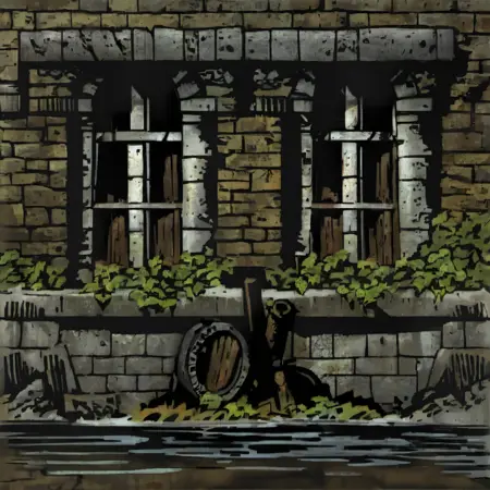 DDAreaRuins - 돌 arch, 두루마리, 나무 통으로 특징지어짐