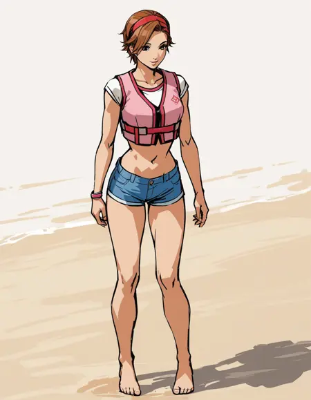 For default summer outfit: Crop Top,Red Headband, Vest, Denim Shorts,Short Shorts