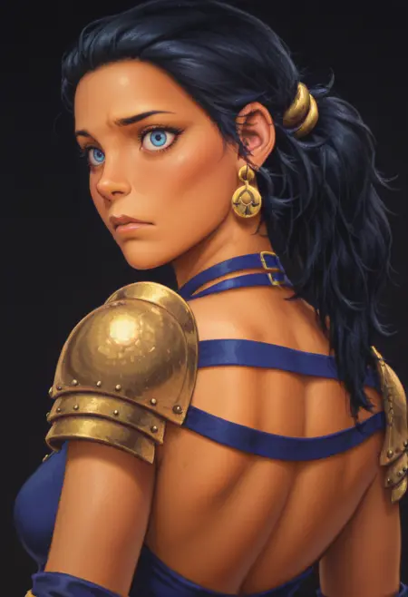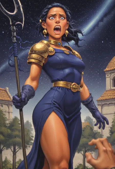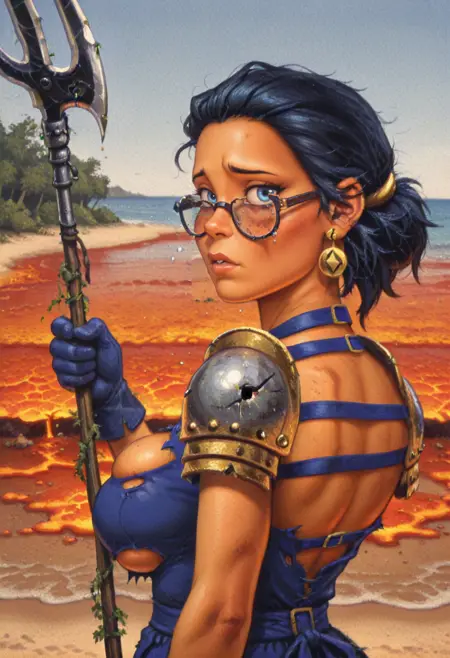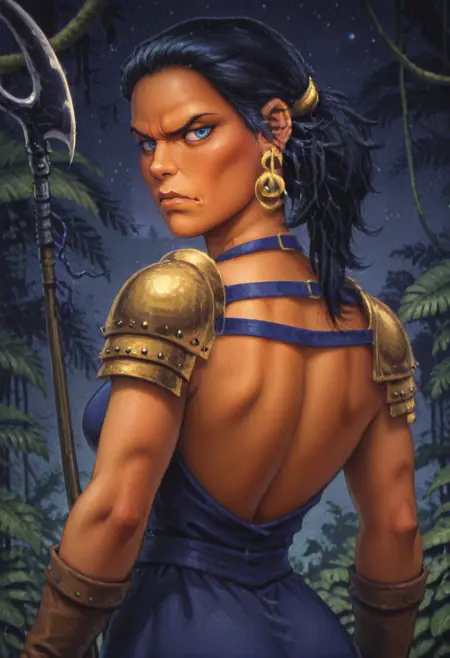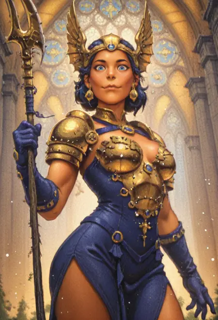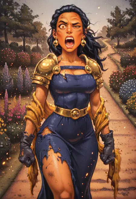 dress, earrings, gloves, jewelry, shoulder armor, holding polearm强度:0.8–0.9
