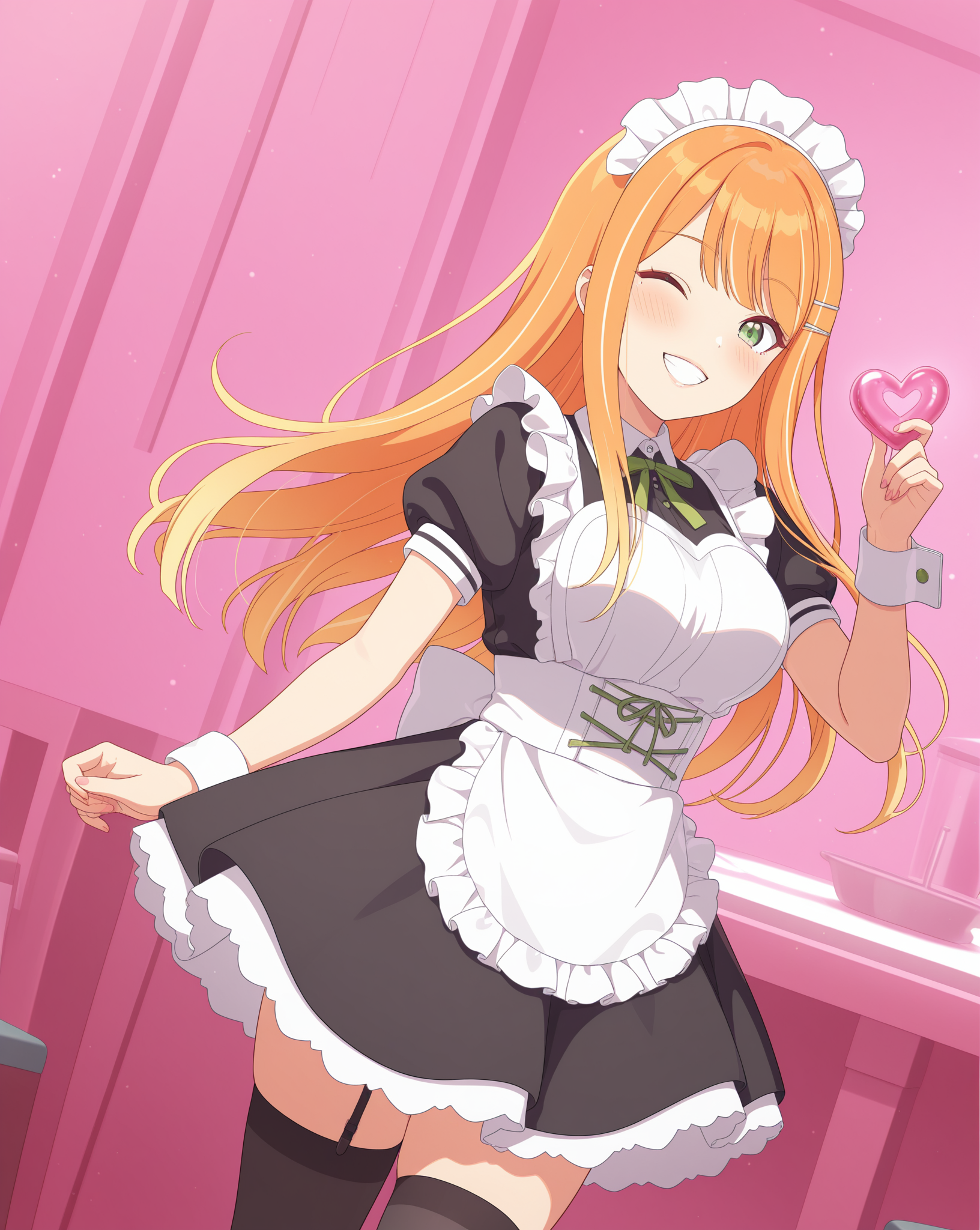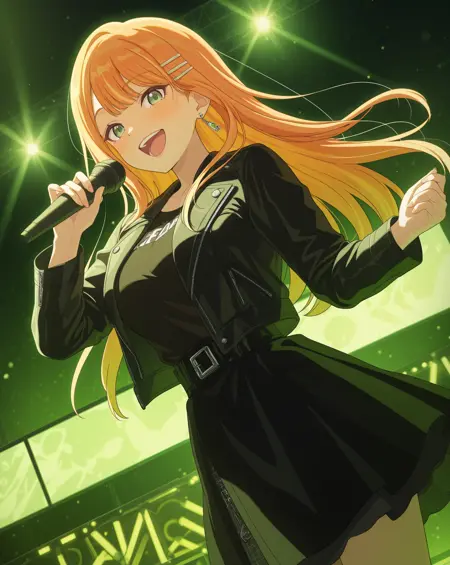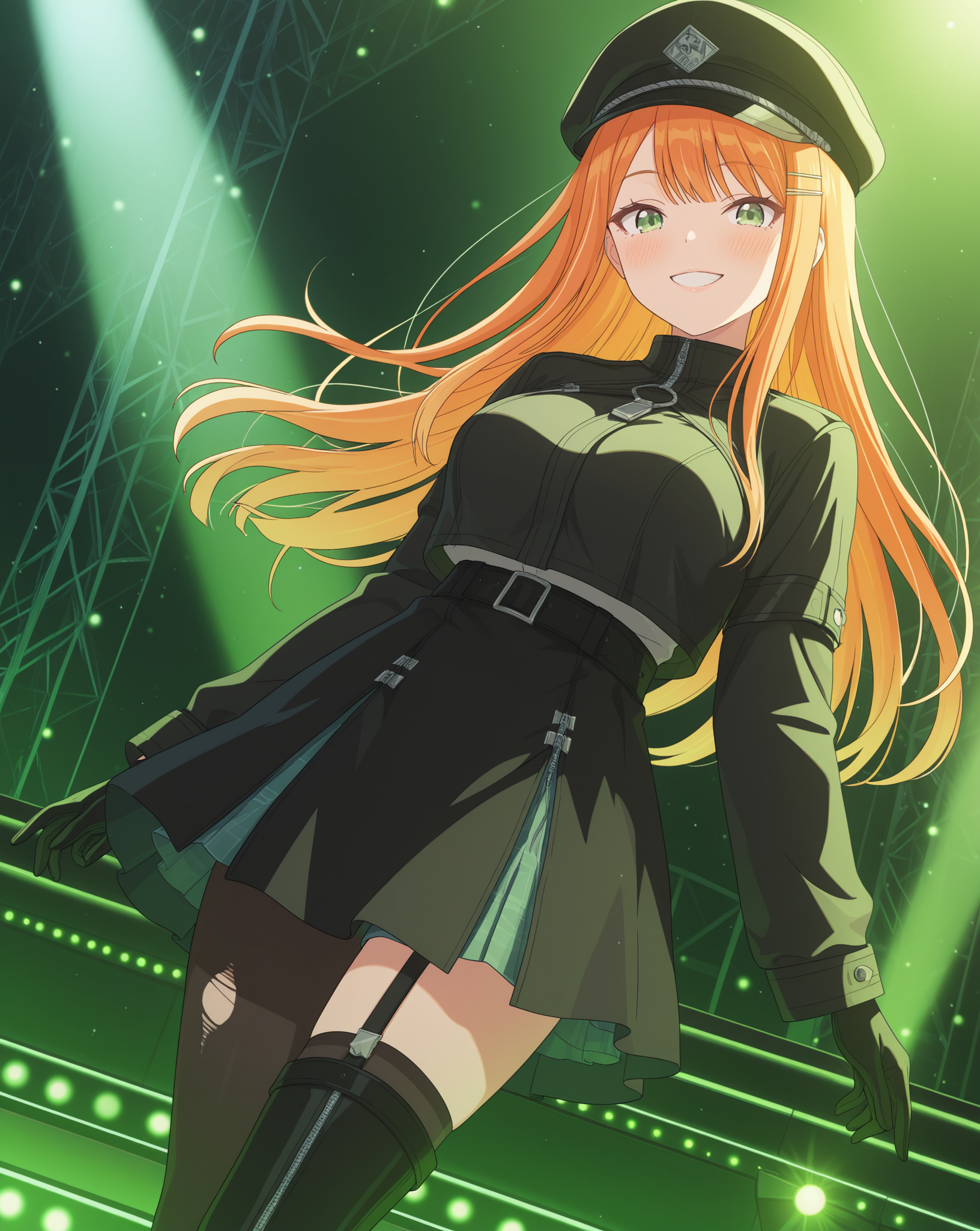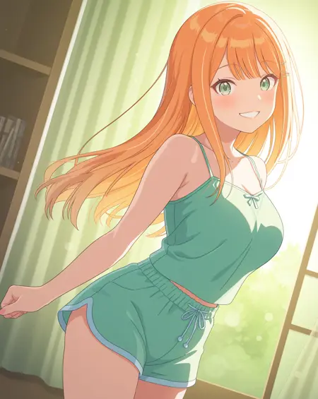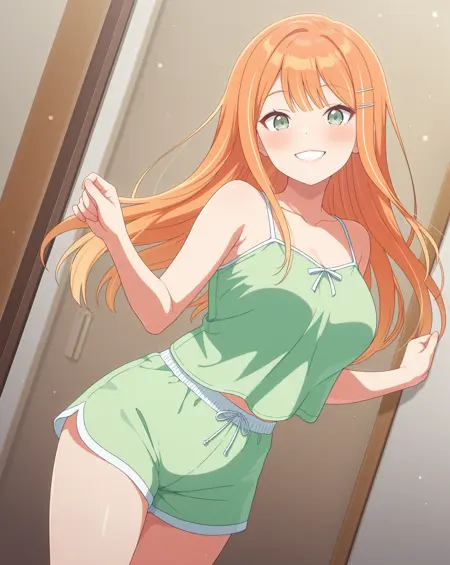 ベース:sumika765pro、ロングヘア、オレンジヘア、グリーンアイ、髪飾り、ヘアクリップ