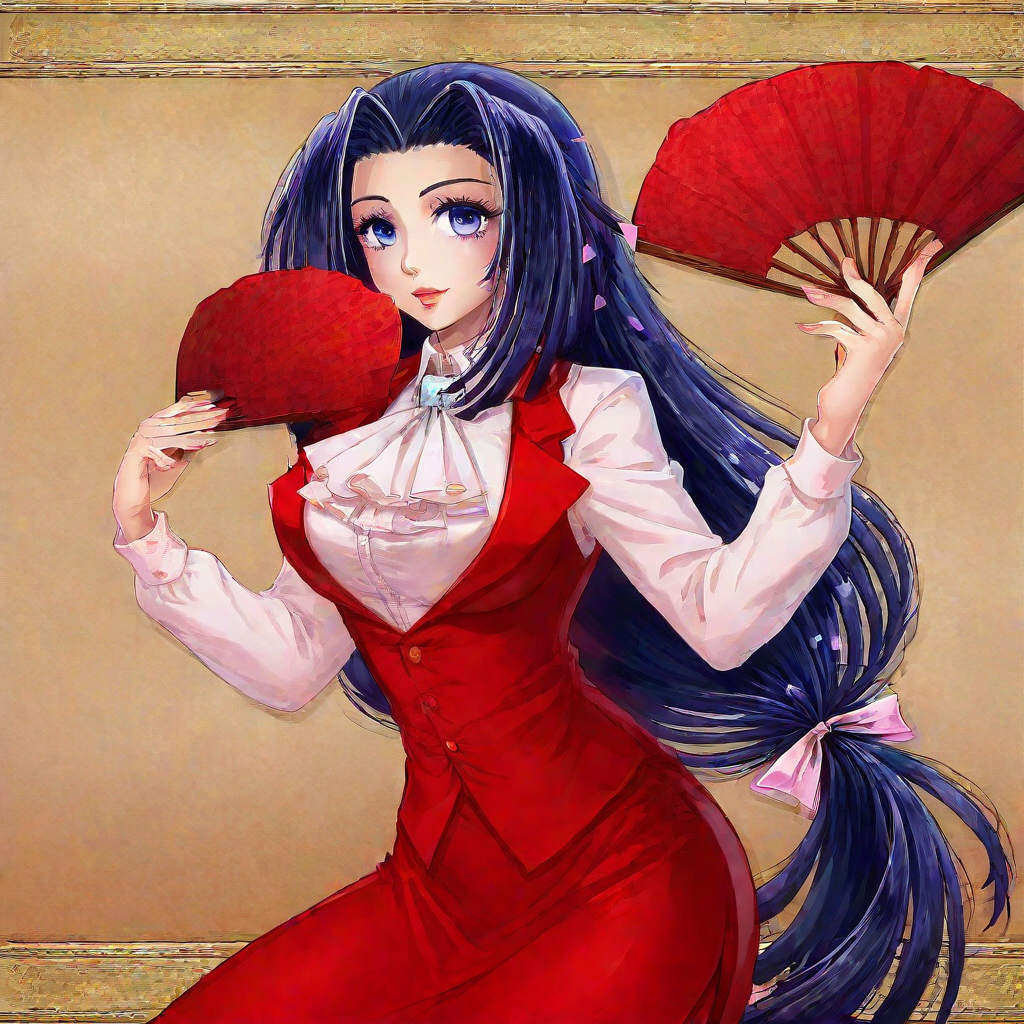 Bizuki Mizuki_Alt Outfit, long hair, black hair, formal, skirt, pantyhose, suit, pencil skirt, skirt suit, jacket, black eyes, white shirt, shirt, red skirt, breasts, large breasts, bangs, red jacket