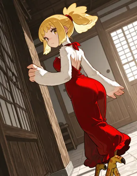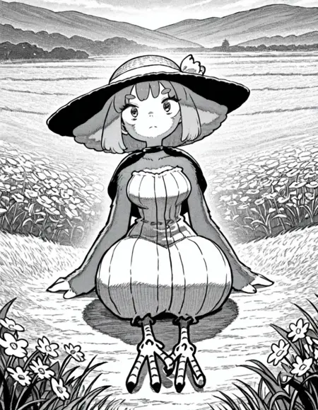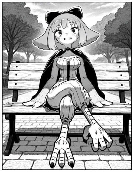 基础提示词:T4m4, 怪物女孩, 短发, 浓眉, 大手臂, 毛茸茸, 中等胸部, 鸟爪,