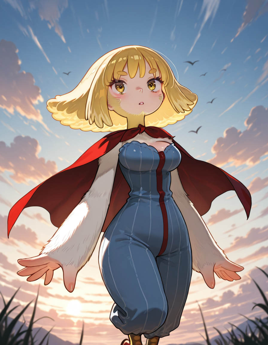配色版:t4m4, 怪物女孩, 短发, 浓眉, 大手臂, 毛茸茸, 中等胸部, 鸟爪, 金发, 黄眼睛, 白色毛发