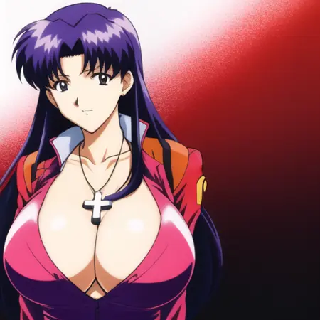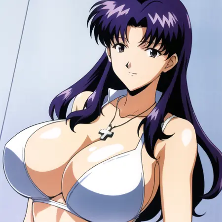 다음과 같이 좋은 결과를 얻음: lora:Katsuragi_Misato:0.45, Katsuragi_Misato, big_breasts, cross_necklace