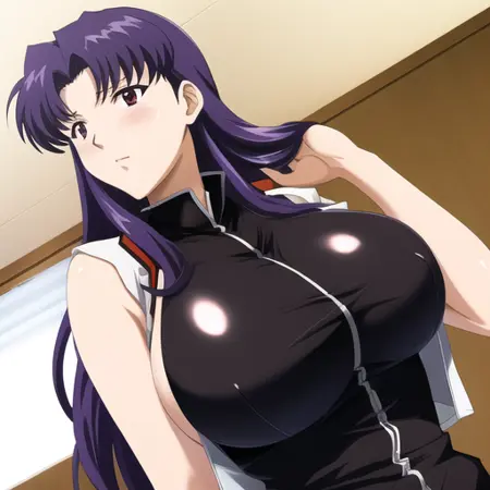 Had nice results with: lora:Katsuragi\_Misato:.45, Katsuragi_Misato, big_breasts, cross_necklace