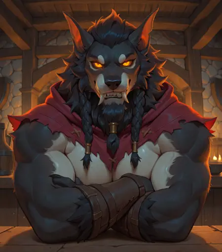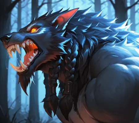 标签:w0rgen,肌肉发达,尖牙,爪子,趾行性,獠牙,毛发,头发,鬃毛,发光的眼睛,辫子,胡须