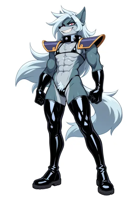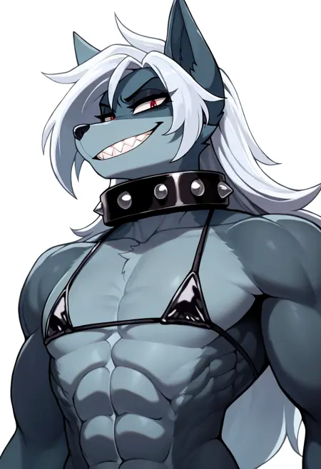 基础提示词:1girl, beatrix, red eyes, long hair, furry, sharp teeth, muscular female, flat chested, pectorals, abs, pubic hair
