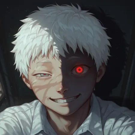Hikaru, White Hair, Short Hair, Grey Eyes, Red Eyes