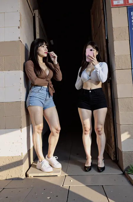 V1.1 增强了偷拍感,以及女孩靠城中村墙的场景的生成, Beta 版更容易生成正面、女孩两侧都有墙的效果图。