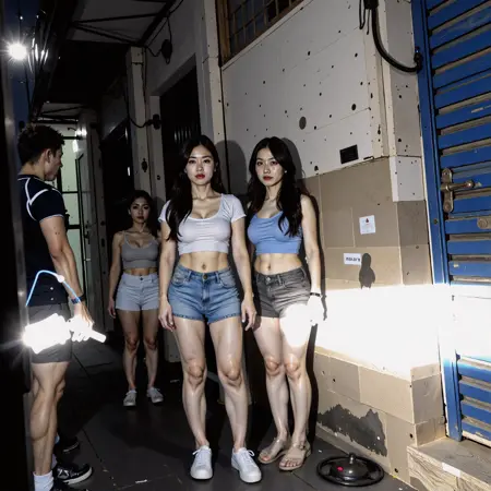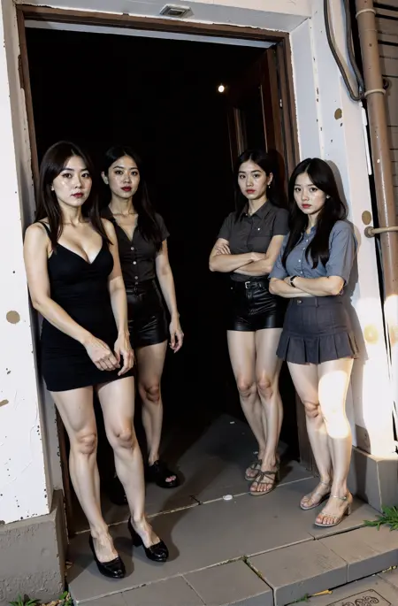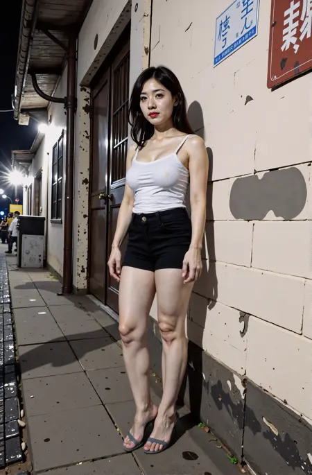 在中国,由于法律限制,性产业处于地下运作。这是这些非法服务的一种常见形式,价格相对低廉。它们通常在夜间出现在城市村庄的街角,站立等待顾客。这个Lora可以描绘中国街头妓女的场景。