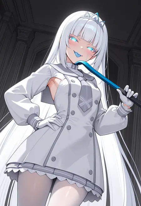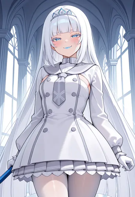 水手领,发冠,灰色领带,白色连衣裙,腋下开叉,双排扣,长袖,白色手套,灰色短裙,白色连裤丝袜,裙下裙