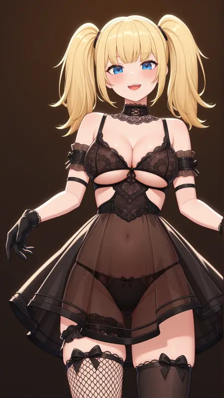 | 학습된 단어 | Ani_(Grok), blonde hair, twintails, long hair, blue eyes,복사됨! lace choker spreading over collarbones, off-shoulder short dress, gothic, corset, belt, back bow, black gloves, ribbon arm wraps, zettai ryouiki, torn clothes, asymmetrical thigh‑highs: left fishnet stocking with bow garter, right sheer black stocking with bow garter,복사됨! lace choker, bare shoulders, cleavage, see-through, negligee, clothing cutout, black lace-trimmed bra, underboob, black lace-trimmed panties, armband, arm garter, lace trim, black gloves,torn clothes, asymmetrical thigh‑highs: left fishnet stocking with bow garter, right sheer black stocking with bow garter,복사됨! |