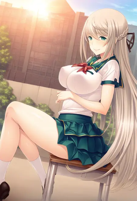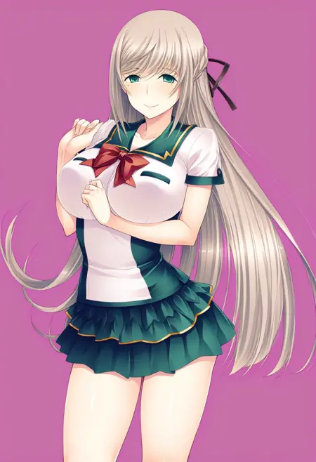 트리거 단어: c-aya, 긴 머리, 백금색 머리, 청록색 눈, 큰 가슴, 머리리본,