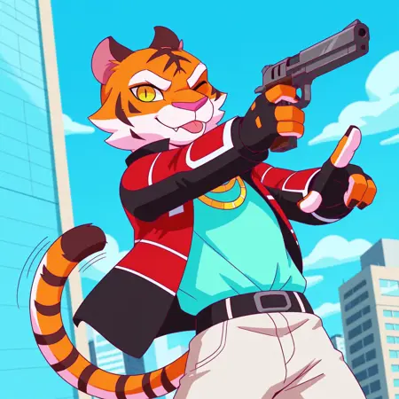 正面提示词:SableFF,毛茸茸的女性,拟人化,猫科动物,老虎,粉红色耳内,脸颊毛簇,白色眉毛,黄色眼睛,黑色瞳孔,竖瞳,粉红色鼻子,橙色皮毛,黑色指甲,扁平胸部