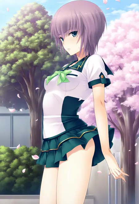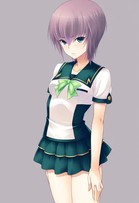 Triggerwords: c-seri, purple hair, short hair, blue eyes, small breasts,