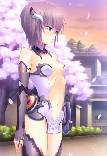 Triggerwords: c-seri, purple hair, short hair, blue eyes, small breasts, headgear,