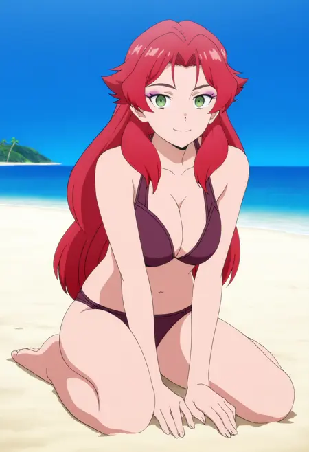 기본 프롬프트: 1girl, merilda, long hair, red hair, green eyes, eyeshadow
