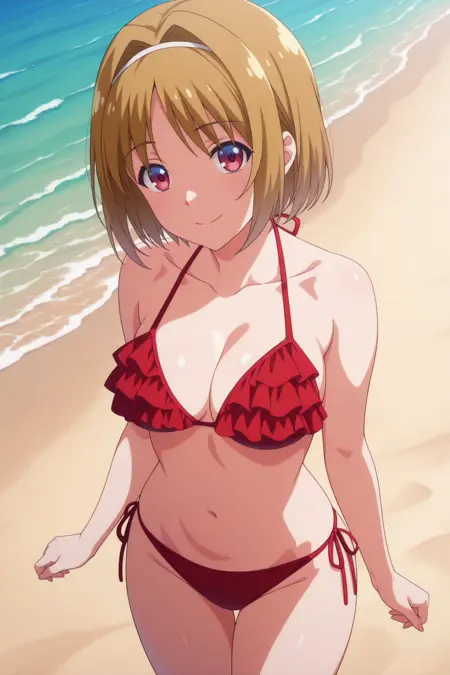 aakikyou, 빨간 눈, 갈색 머리카락, 머리카락 흐름, 흰색 헤어밴드, kikyouschool, 학교 복장, 파란색 넥타이, 흰색 셔츠, 빨간색 재킷, 흰색 치마, 주름 치마, 애니메이션 컬러링,
