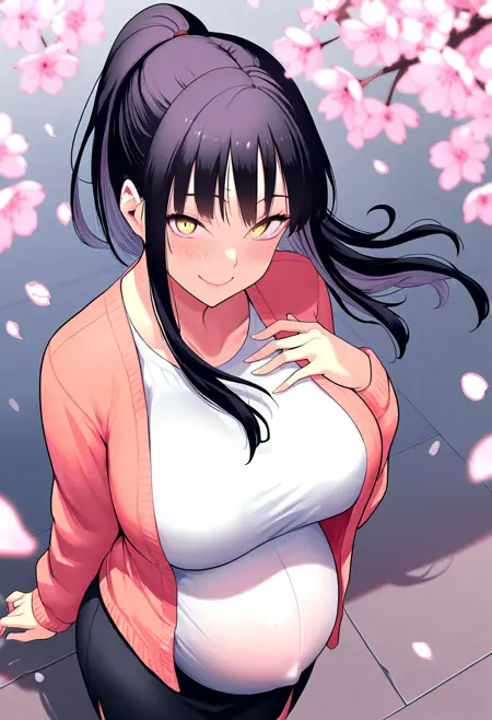 yagamihina,black hair,yellow eyes,large breasts,long hair