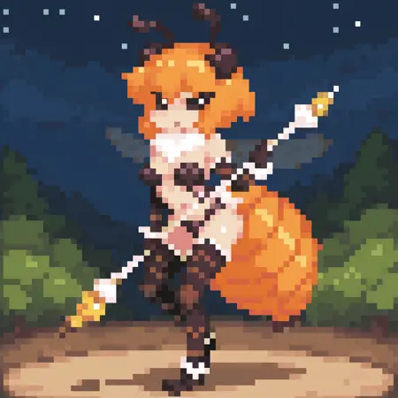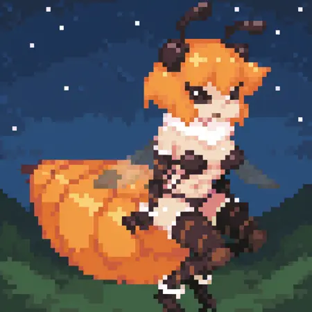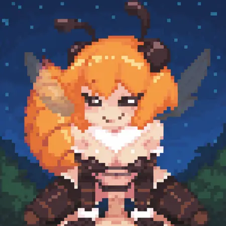 kilbeedx, 관절동물 소녀, 주황색 머리카락, 씨 antennae, 날개, 앞머리, 추가 눈, 단발, 몸 털, 목 털, 벌 소녀, 큰 꼬리, 몬스터 소녀, 가슴, 검은 공막, 흰 눈, 동공 없음
