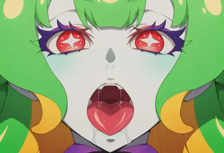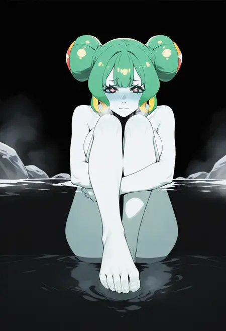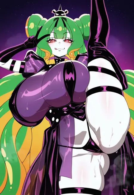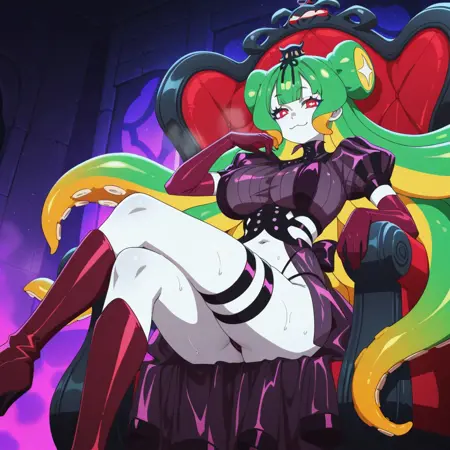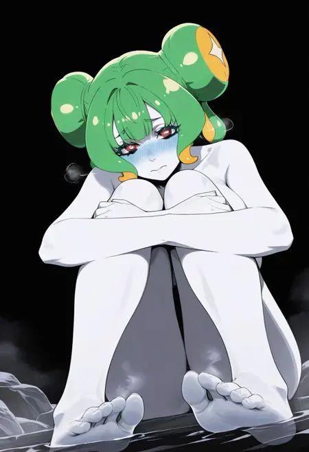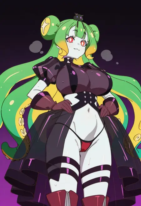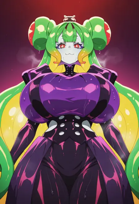 外观:苍白皮肤,绿发,黄发,多色发,触须发,双发髻,:3