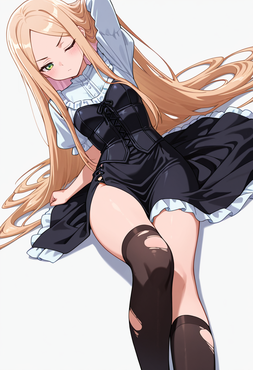 lilith_cnr, 1girl, blonde hair,very long hair,parted bangs, green eyes,