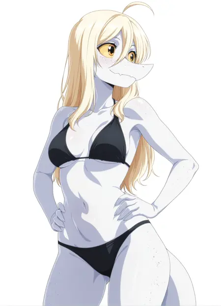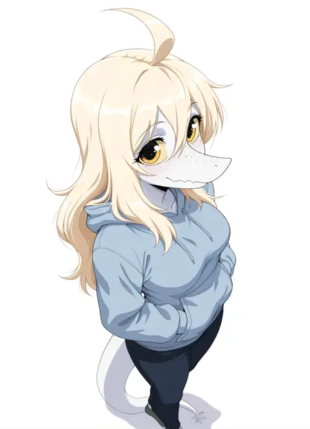 Judee,兽耳女性,恐龙女孩,白皮肤,金发,长发,呆毛,黄眼睛,雀斑,头部朝向侧面