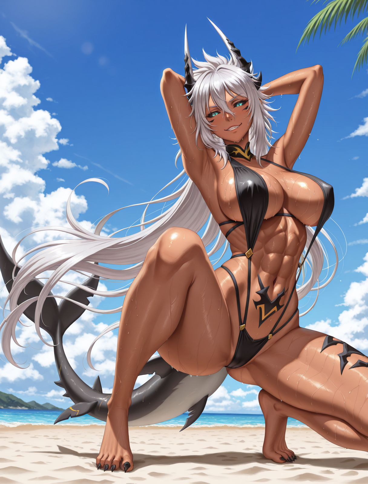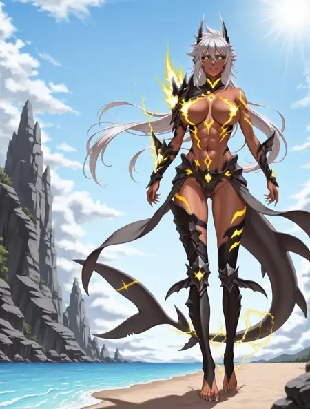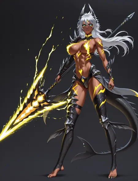 | トレーニングワード | Tiabravesouls,1girl,solo,long hair,facial mark,large breasts,navel,black sclera,animal ears,aqua eyes,colored sclera,long fingernails,tail,sharp fingernails,white hair,glowing eyes,toenails,grey hair,horns,dark skin,dark-skinned female,sharp toenails,long fingernails,fingernails,glowing,shark tail,abs,monster girl,very long hair,hair between eyes,コピーしました! claws,body markings,crotch plate,barefoot,toeless legwear,asymmetrical clothes,glowing,electricity,fins,asymmetrical thighhighs,thighhighs,electrokinesis,convenient censoring,asymmetrical shoulder_armor,transformation,コピーしました! weapon,fusion,weapons inside hands,arm blade,コピーしました! |