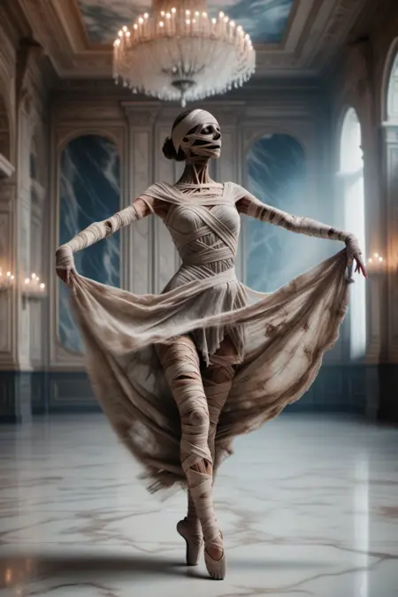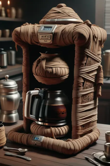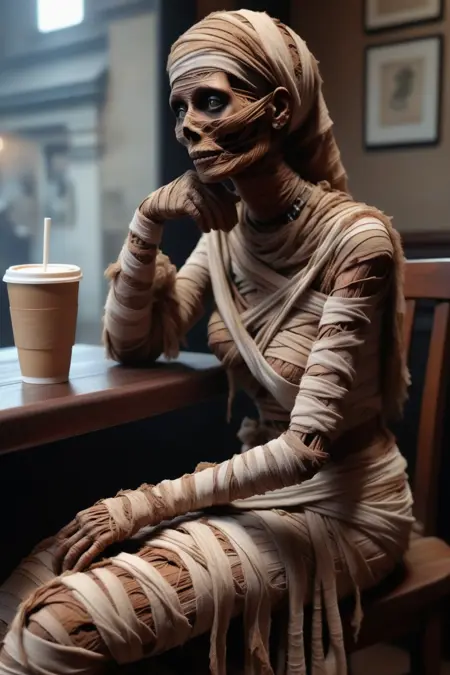 With this Lora you can mummify just about anything. It doesn't always fit, but the Lora will do its best to give your idea a mummified look.