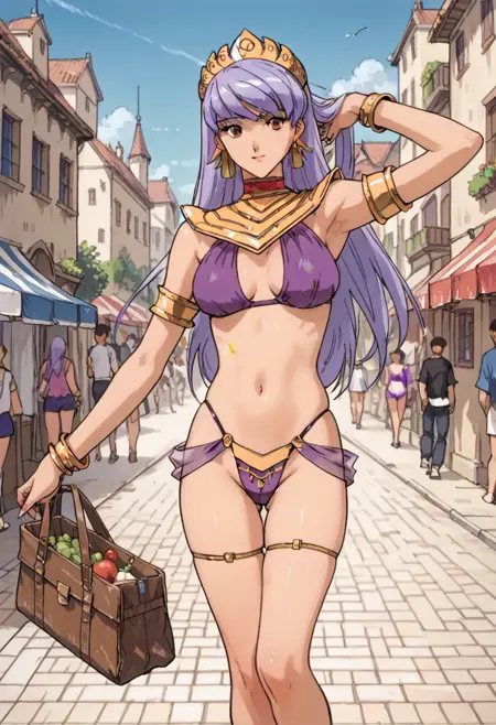 Trigger: erola_s, long hair, purple hair female, jewelry, bikini, armlet, earrings, bracelet
