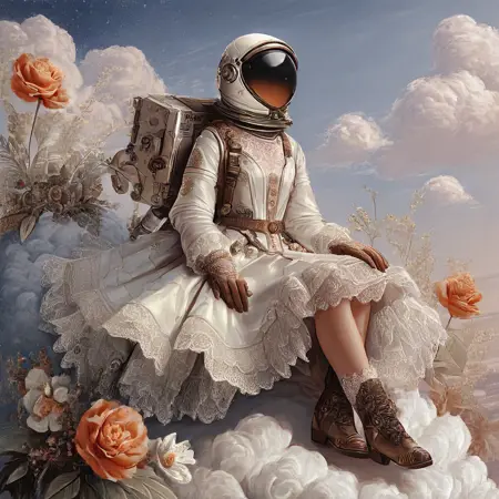This LoRA collides mid-century sci-fi pulp with the lavish excess of 18th-century fashion.