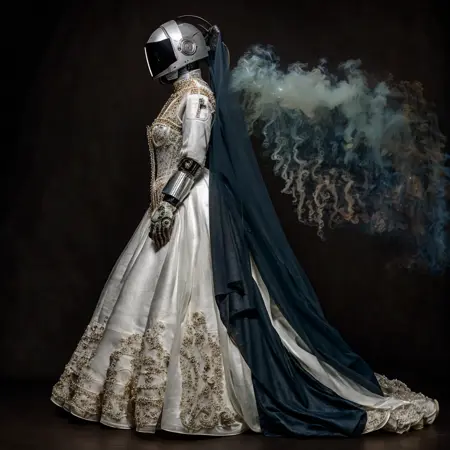 Inspired by the ornate opulence of François Boucher, the retro-futurism of Chris Foss, and the theatrical flair of Thierry Mugler.