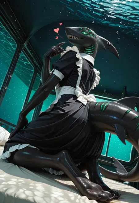 📝 Eyefestation 是游戏 Pressure 中的一种怪物,代号为 Z‑317,外形类似一只变异的鲨鱼,身体上布满了数十个发光的绿色眼睛。它的鳍、背部和头部都布满了带有十字形瞳孔的眼睛,这些眼睛释放出致命的凝视。该生物拥有黑色光滑的身躯、细长的体型,以及类似螳螂的柔韧鳍状结构。