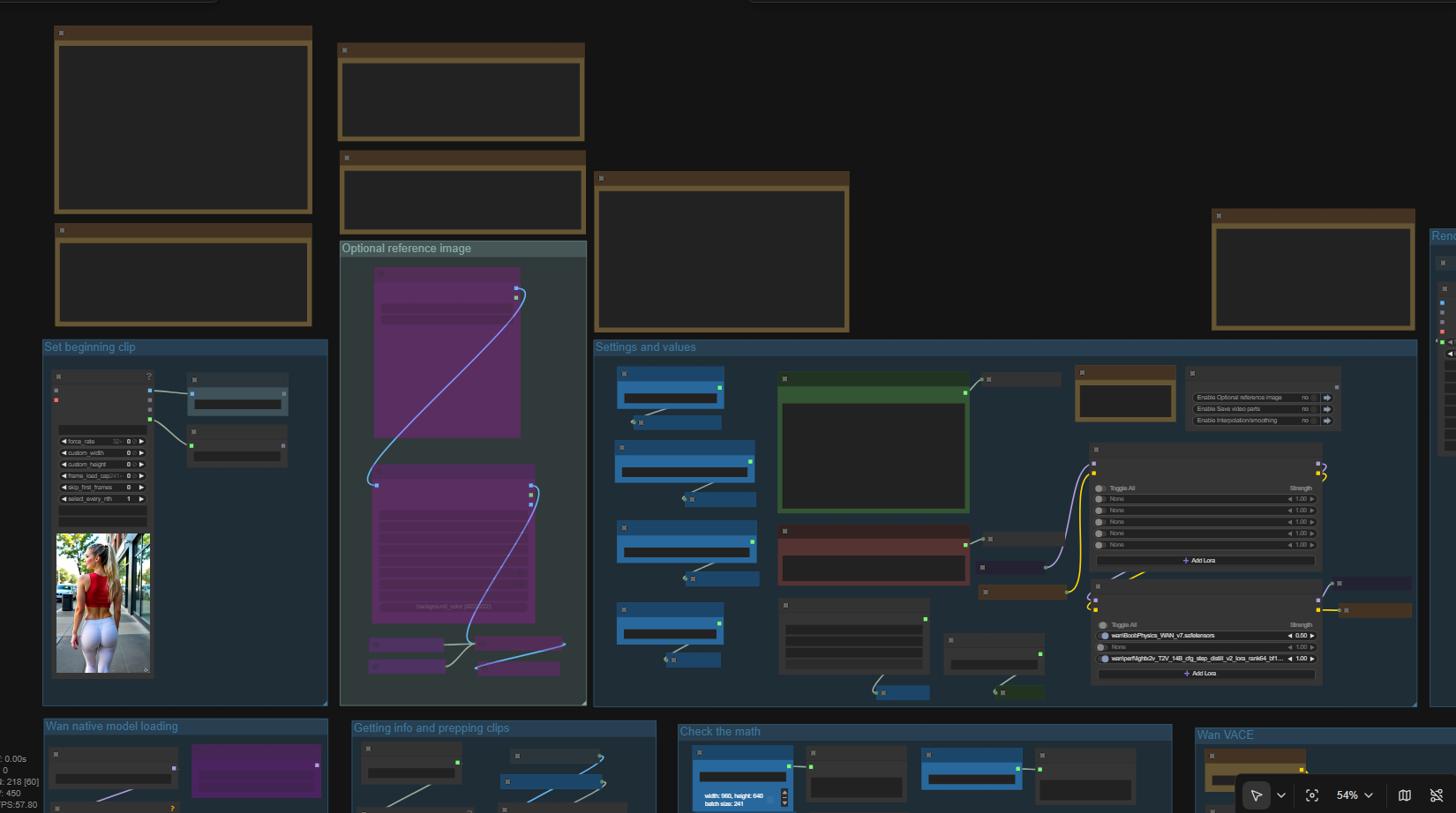 重要:通过进一步测试以及我的原型工作流发现,此问题并不在工作流本身,而是与ComfyUI在更新至Wan 2.2功能后行为发生变化有关。更新后,for-loop节点出现了异常且缓慢的行为:尽管系统后台处理速度很快,但浏览器端却极其迟缓。控制台输出会显示任务已完全完成,但浏览器界面仍可能需要长达10分钟才能更新完毕。