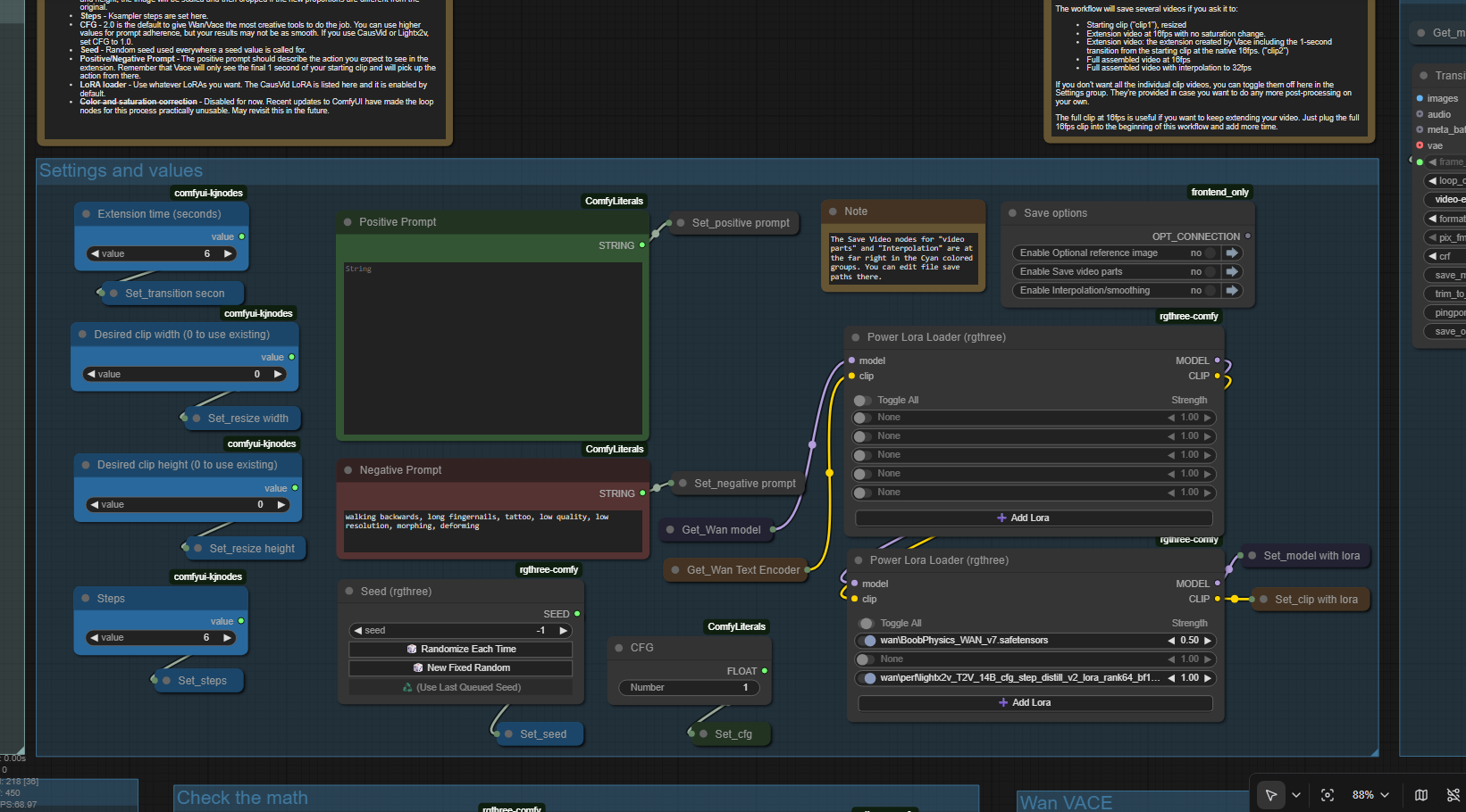 本视频扩展工作流基于我此前的Wan拼接片段工作流。本简化版本专为使用Wan与Vace从起始片段开始扩展视频而设计。