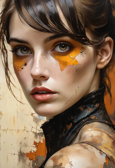 Recommended Keywords:painterly textures, dynamic lighting, ink splatter, abstract composition, soft gradients, cinematic contrast, expressive color, textured background, high detail, stylized anatomy