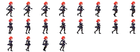 모든 캐릭터는 같은 방향을 바라봐야 합니다. 예시처럼 "Run" 포즈는 오른쪽을 바라보고 다른 포즈들은 왼쪽을 바라보지 마세요.