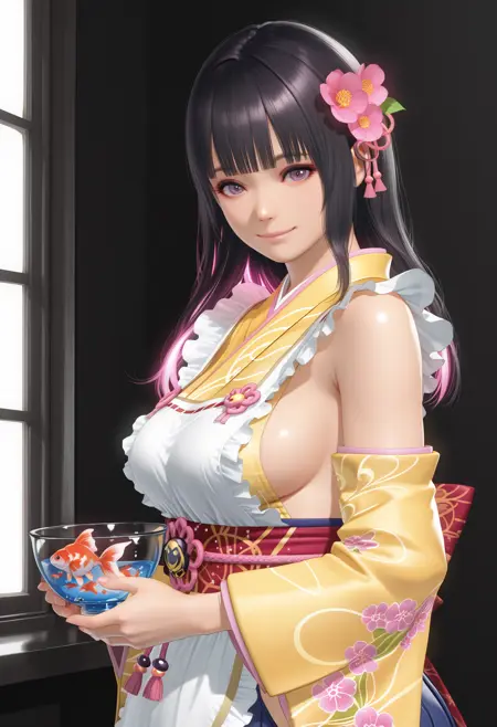 character: koharu \(doaxvv\), purple eyes, pink lips,