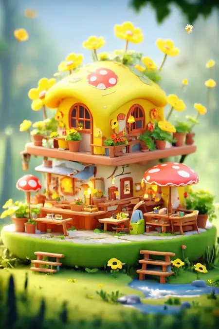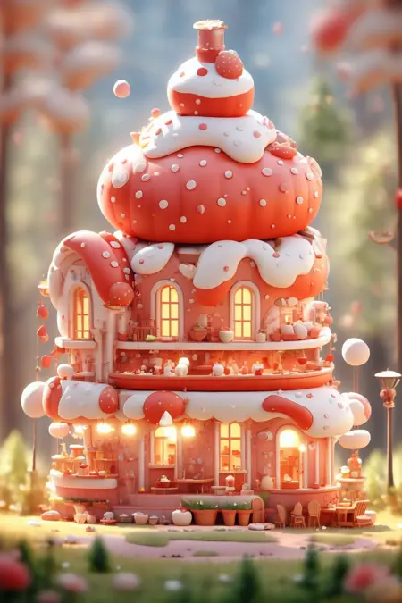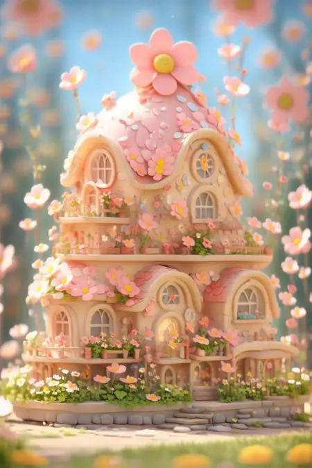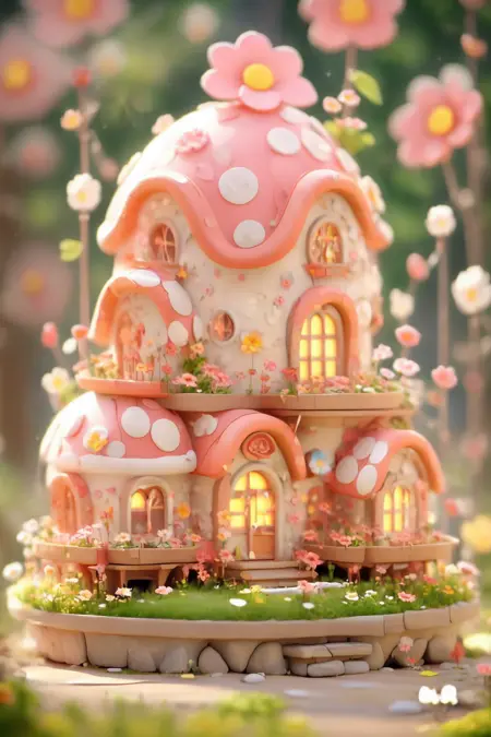 このモデルは、3Dレンダリング効果を持つ多様な非常にかわいい小さな家を生成できます;