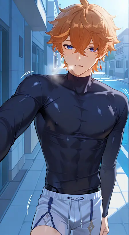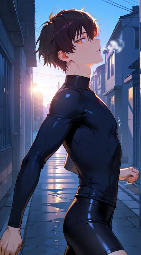 触发词:黑色衬衫、紧身衣、紧身衬衫、高领、紧贴皮肤、裸露肩膀