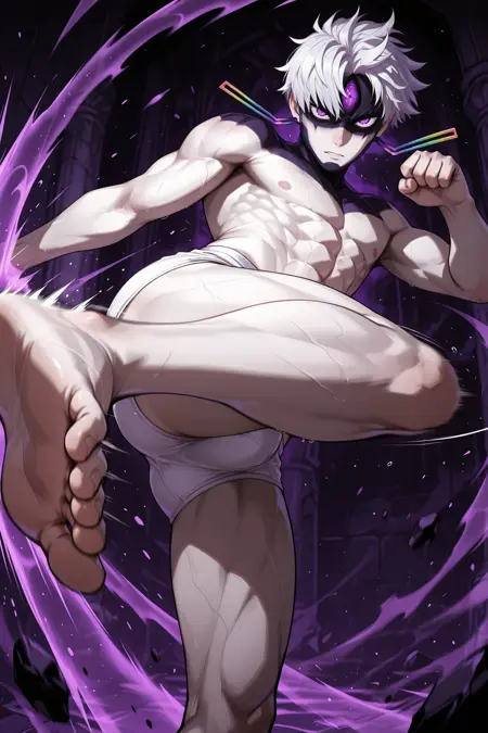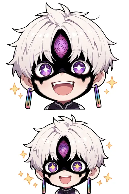 태그: 악의 눈_dandadan, 무지개 귀걸이, 보라색 눈, 제삼의 눈, 보라색 테마