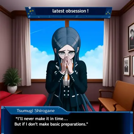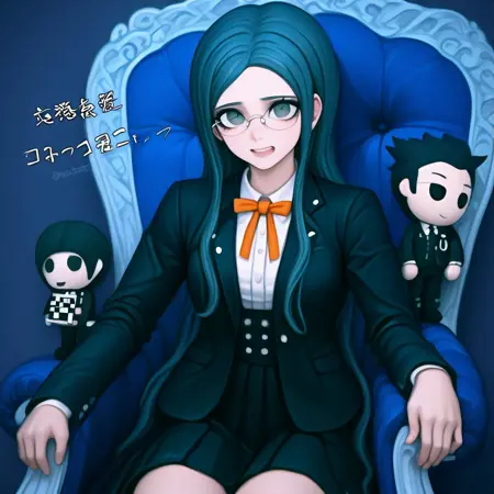 훈련 데이터는 Tsumugi Shirogane의 공식 아트, 고품질 비공식 아트, 그리고 그녀의 모든 공식 의상(V3, Danganronpa S, 10주년 복장)을 포함한 일정량의 합성 아트로 구성되어 있습니다. 이와 함께 Danganronpa 애니메이션과 게임에서 다양한 이미지를 추가해 스타일을 강화하고, 각 스타일에 맞춰 이미지 생성 방향을 유도할 수 있도록 했습니다. Chiaki Nanami에 대한 데이터도 충분히 포함했습니다. Tsumugi만큼 많진 않지만, Danganronpa 지식이 거의 없는 기본 모델이라도 그녀의 이미지를 안정적으로 생성할 수 있을 정도로 충분합니다. 두 캐릭터를 동일한 이미지에 함께 배치하는 데에도 잘 작동합니다.