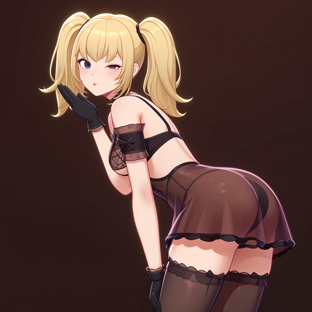 GrokのAni。DevとFullの両方で動作します。追加のプロンプト:黒いドレス、ブラウス、レース