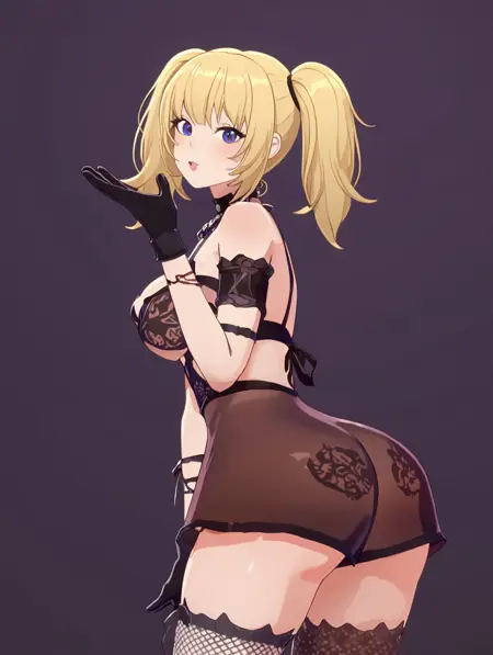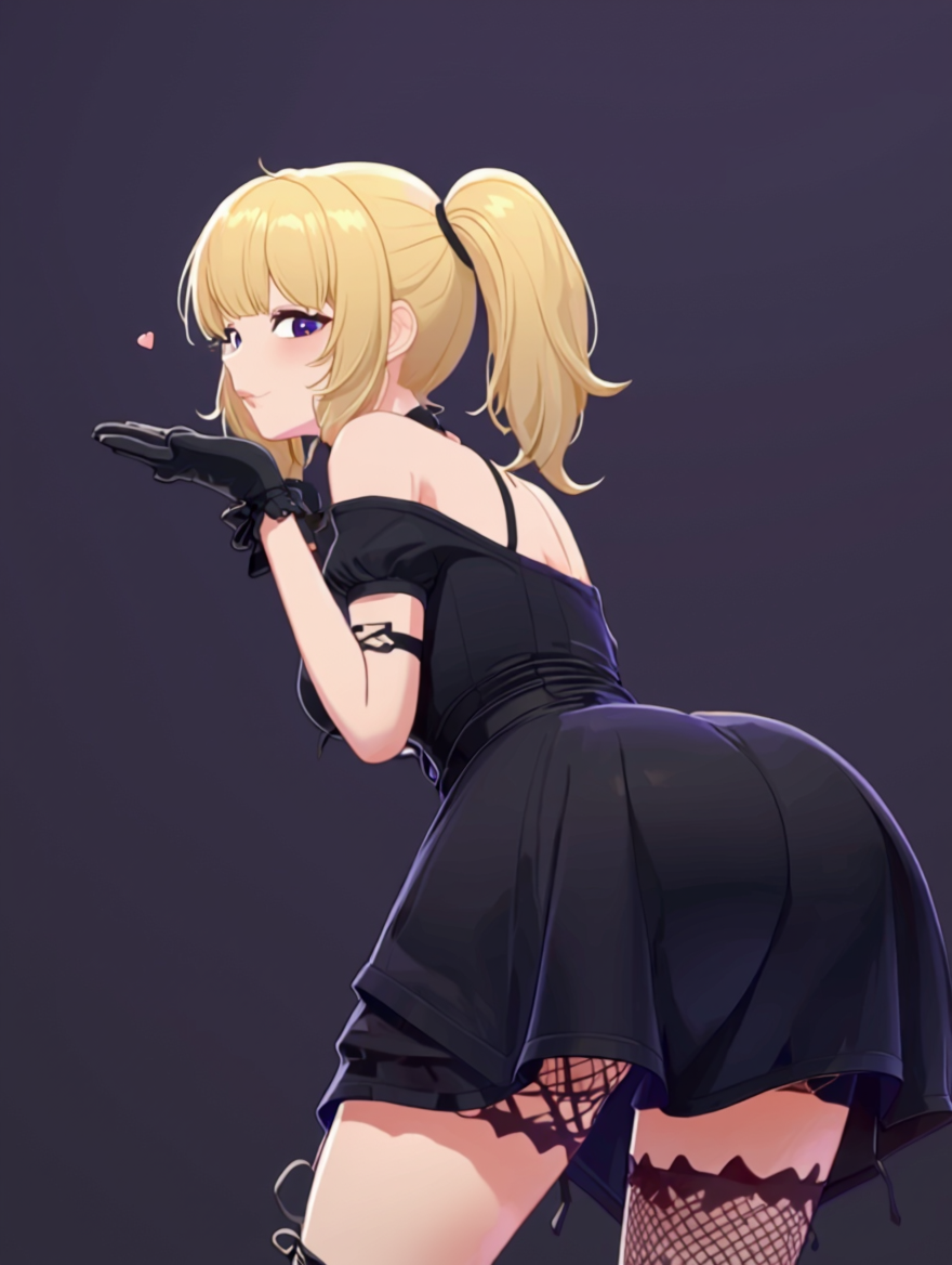 Grok의 Ani. Dev 및 Full 모두에서 작동. 추가 프롬프트: 검은 드레스, 블라우스, 레이스