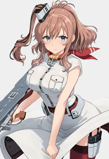 saradef, 흰 드레스, 넥커치프, 빨간 넥커치프, 앵커, 앵커 목걸이, 주머니, 가슴 주머니, 벨트, 허벅지까지 긴 양말, 빨간 허벅지까지 긴 양말, 팔찌 끈,