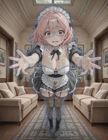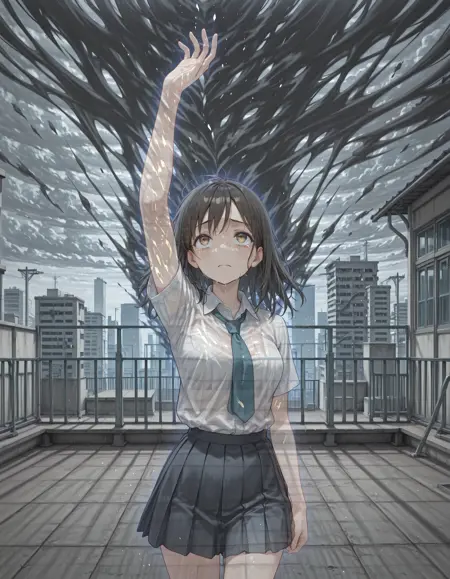 With an enhanced dataset the results are improved. There is still a strong style influence which biases the results towards an anime style and backgrounds exhibit overfitting. Effect works best when the background is a repeating pattern (like stone walls, concrete paths) or includes elements that extend across the subject (windows, edges etc). Although it was not tagged for this at all, adding "see-through head" may improve the transparency of the head when used in addition to "see-through body".