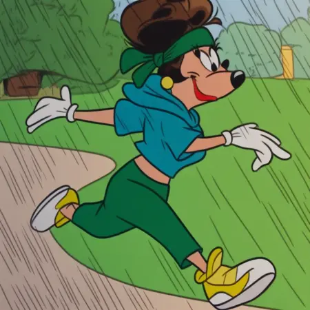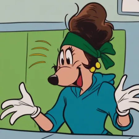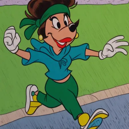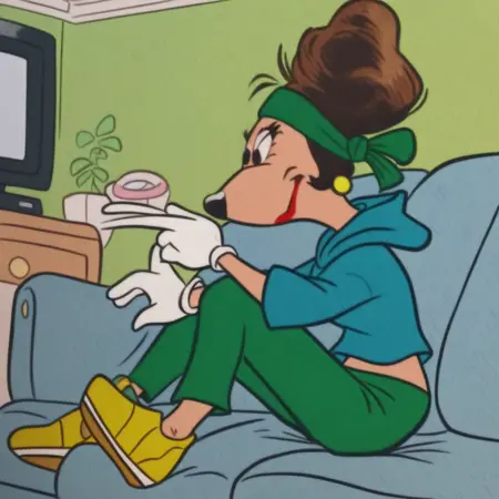 Webby strikes, furry female, 1girl, animal nose, earrings, red lipstick, brown hair, upward hair, white gloves, green headband, cyan hoodie, green pants, yellow shoes