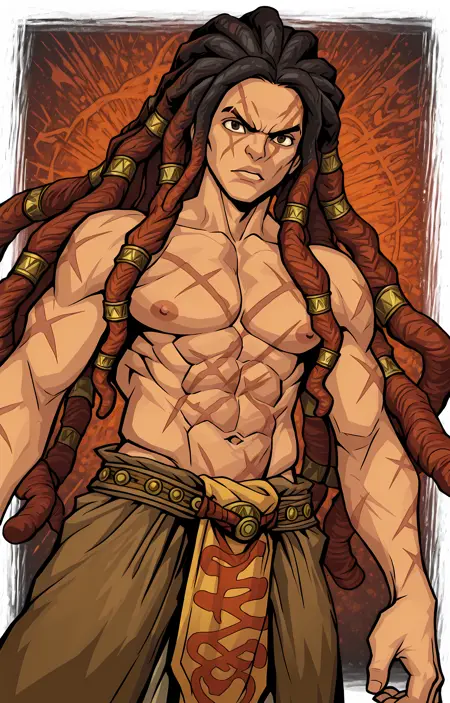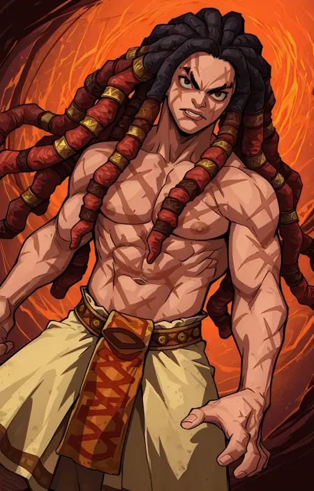 来自《街头霸王》的Necalli。主要触发词为 [sf_necalli],或使用 [nec_vtrig] 触发他的V-Trigger强化形态。