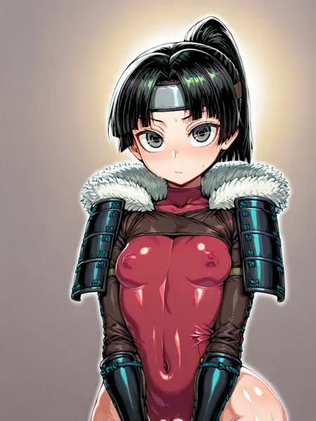 紫色緊身衣, 毛皮鑲邊, 曲線玲瓏, 小臂護具, 靴子, 肩甲, 日式鎧甲, 鎧甲, 小腿護具, 草鞋,